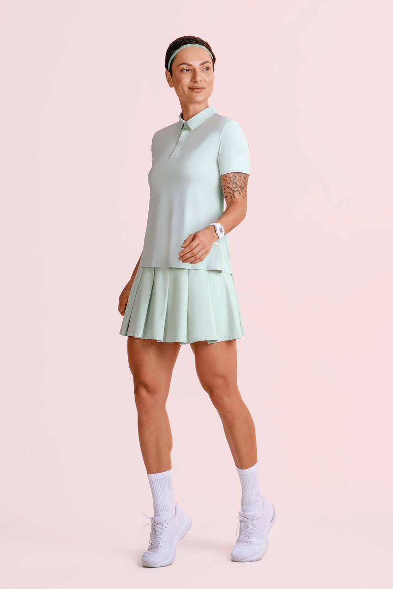 Com bolso interno e um espaço dedicado para a bolinha, esta saia garante praticidade durante a partida. O design reduz o atrito entre as pernas, proporcionando maior liberdade de movimento, enquanto o tecido de secagem rápida mantém você seca e confortável do começo ao fim.