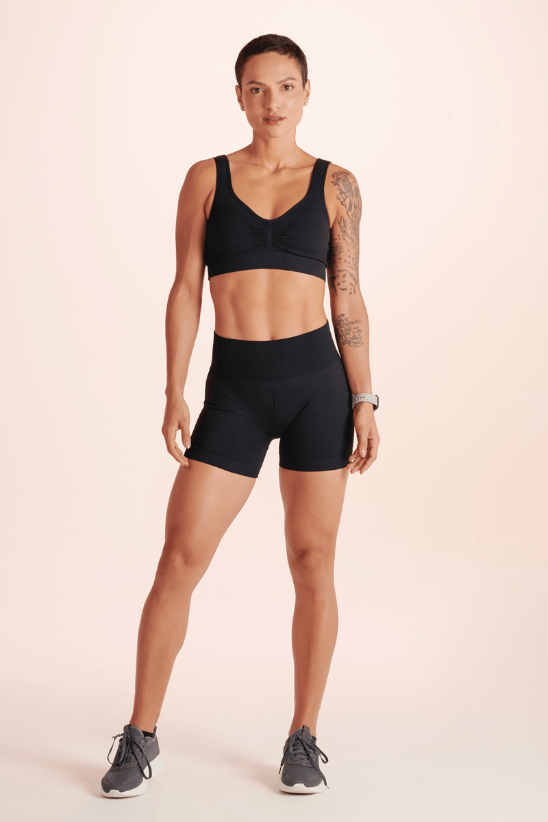 Shorts sem costura com modelagem que se adapta ao corpo de forma confortável.