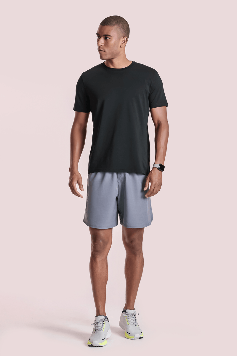 Shorts masculino com modelagem reta mais soltinha do corpo. Em tecido leve, possui cós em elástico aparente e regulador em cadarço para amarração. Possui leves furos nas laterais que facilitam a respiração e detalhe refletivos para atividades externas noturnas. A barra possui leve arredondado e detalhe de fenda e, na parte posterior, passador para camisa.