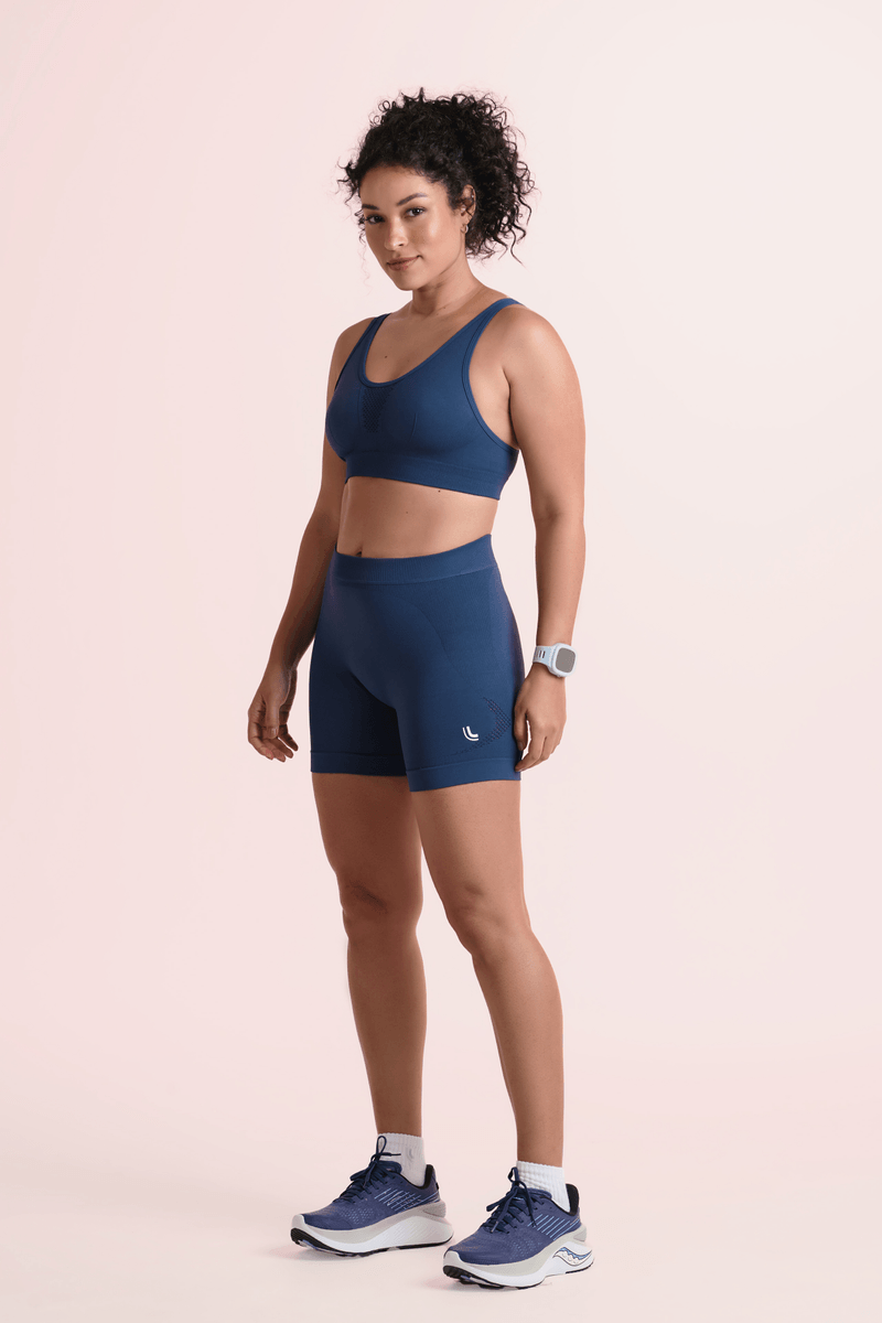 Top sem costura com a tecnologia Seamless Dry, que permite maior respirabilidade e secagem rápida do suor, de leve suporte para esportes de baixo impacto. Possui decote arredondado com pontos que melhoram a sustentação do busto, mesmo com a alça mais fina e delicada.